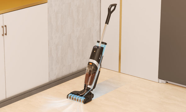 But vacuuming is only half of what it can do. Because it can vacuum and clean at the same time, it doesn't need to use a mop. It's powered by a lithium-ion battery that rinses and washes the dirt off the floor for you, so you can put the mop down. It will save you at least half the cleaning time!